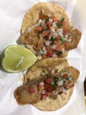 Two crispy beer battered fish tacos with your choice of a flour or corn tortilla.
